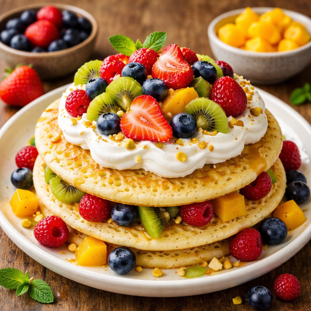 Baghrir with cream and fruits