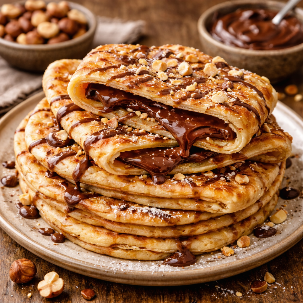 Layered Moroccan pancake filled with chocolate