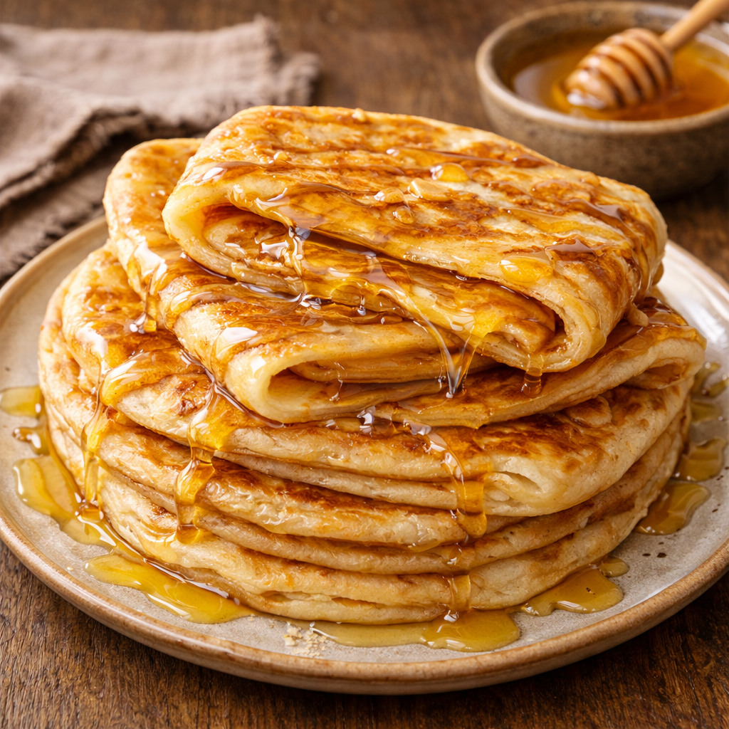Layered Moroccan pancake drizzled with honey