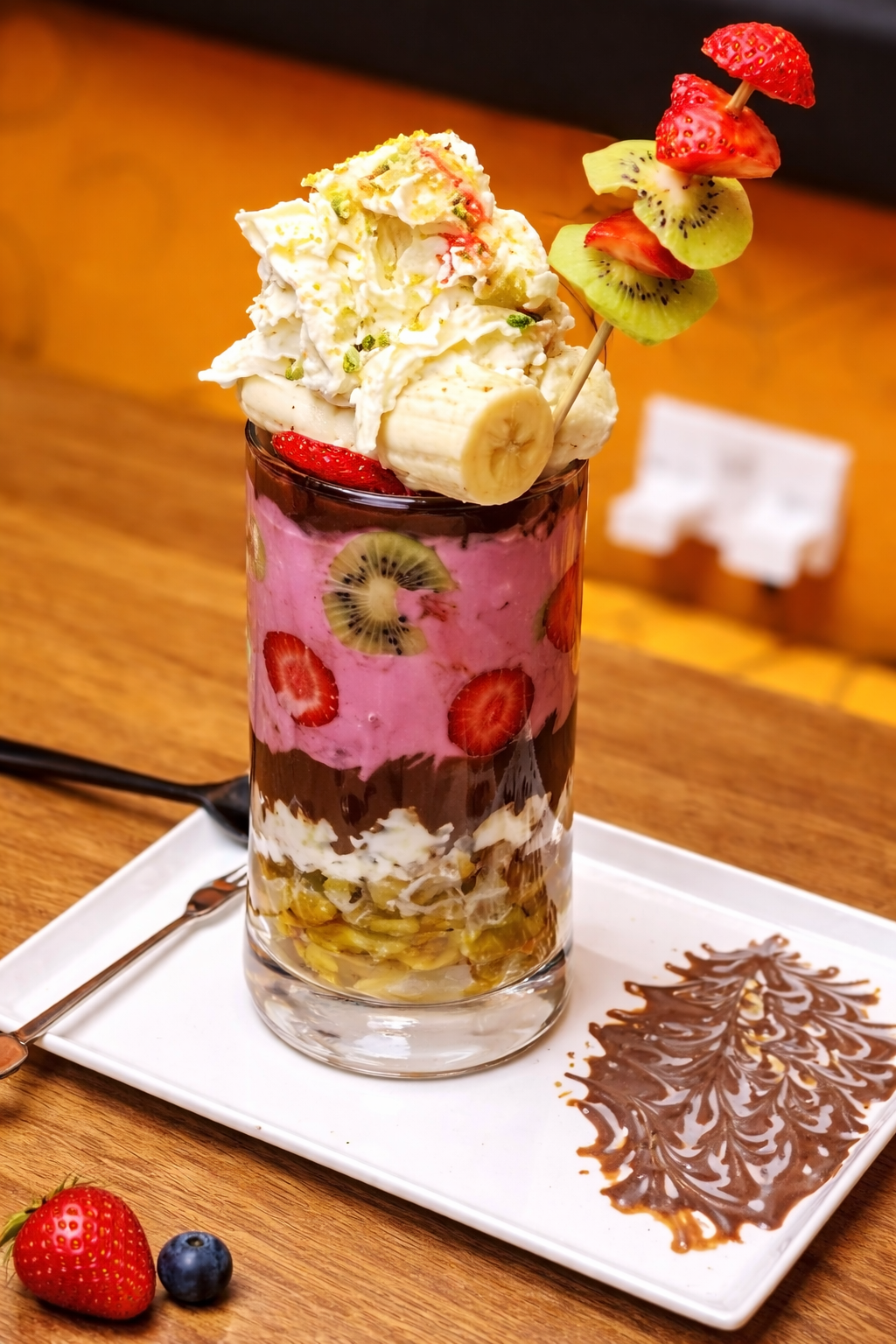 A sweet mix of fruits finished with crunchy Kit Kat pieces