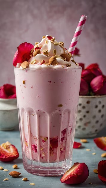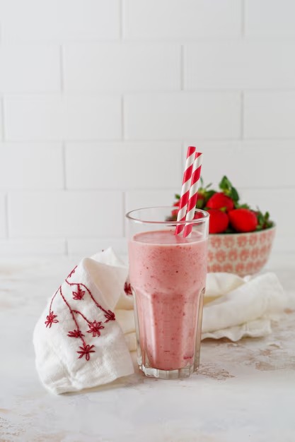 Creamy banana milkshake blended with fresh strawberries for a smooth, sweet, and refreshing taste