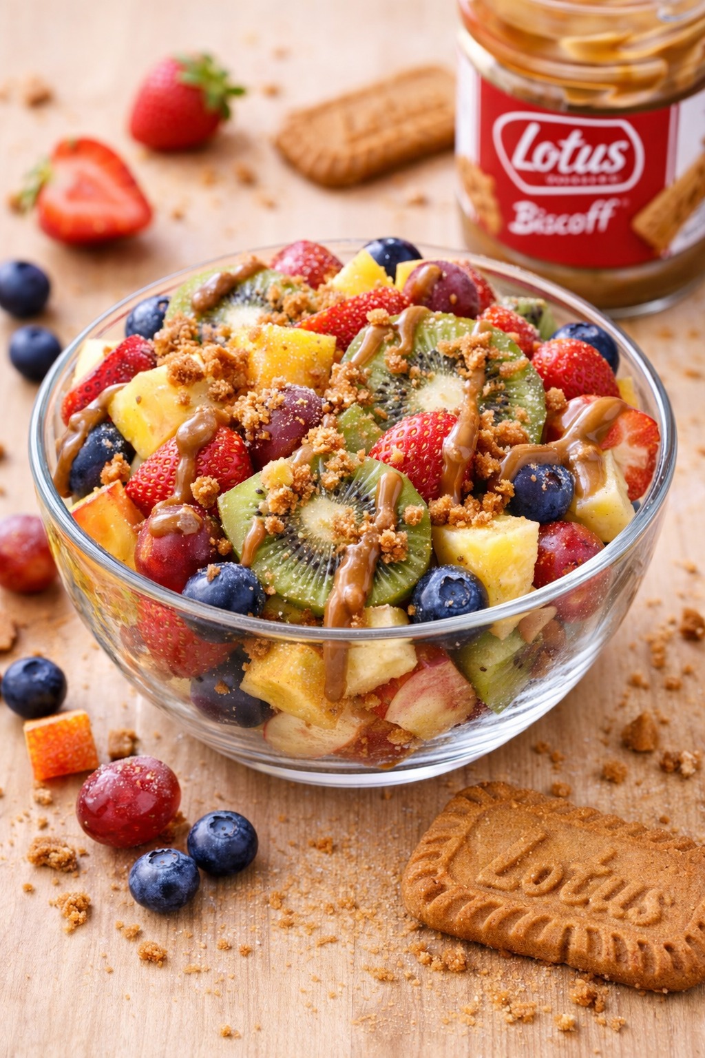 Fresh fruits combined with the rich, caramel flavor of Lotus spread